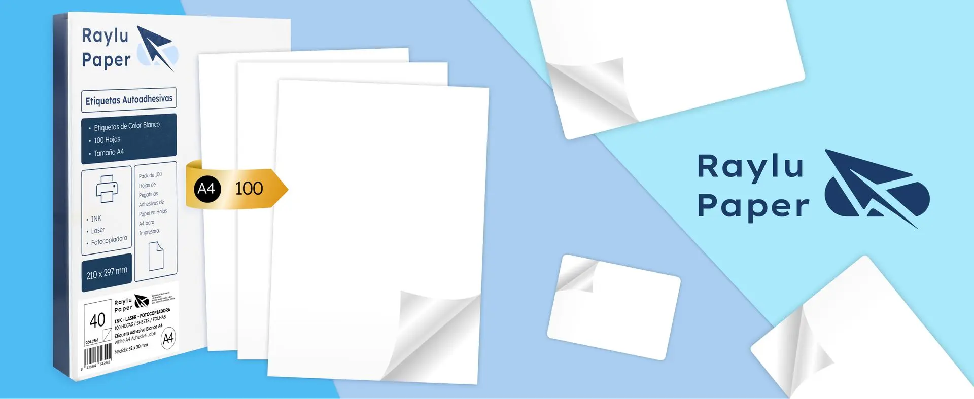 ETIQUETAS ADHESIVAS A4 RAYLU 52,5x29,7MM 36 POR HOJA 100 HOJAS