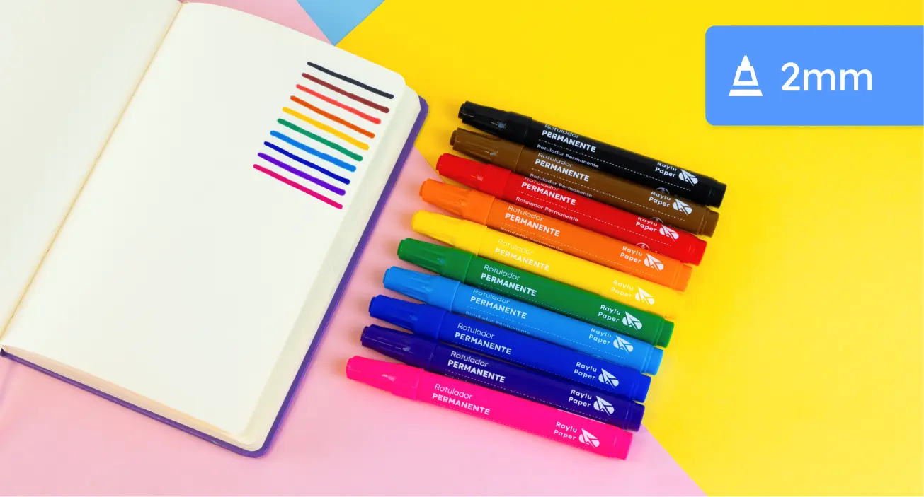 - ✅ Rotuladores permanentes: Nuestros rotuladores permanentes ofrecen un trazo intenso y duradero, ideales para marcar, etiquetar y escribir sobre múltiples superficies con total seguridad y precisión.
