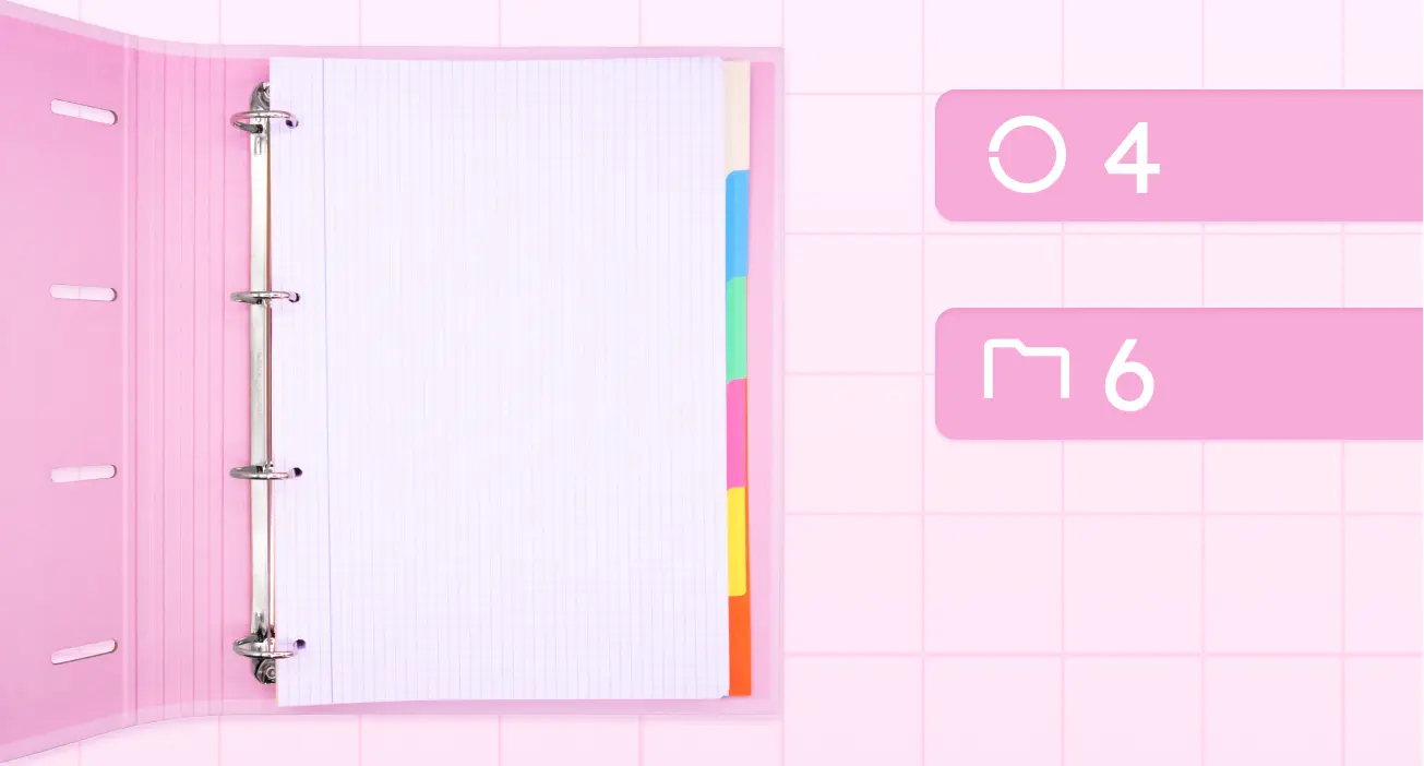 - ✅ Contiene: 1 carpeta archivadora 4 anillas de color rosa oscuro con cierre de goma, 6 separadores de colores, recambio de 100 hojas cuadriculas perforadas A4 de 90 gr con cuadriculas 4x4mm.